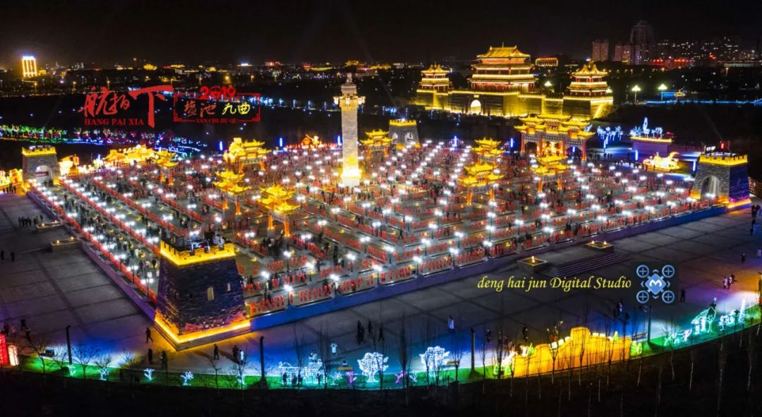 而在长城关一侧,占地1.27万平方米的九曲民俗文化园与古城关连为一体,相映成趣。依次分布着七星柱、烽火台、九曲阵、牌坊宫门和影壁等设施,形成九宫八卦的布局,体现出雄厚的大漠边关气象。古有俗语云:“九曲阵里走一走,轻松活到九十九”。如今这里已经成为每年春节、元宵节人们必去的赏玩之地,去年共接待游客和群众近50万人次。